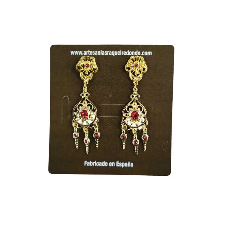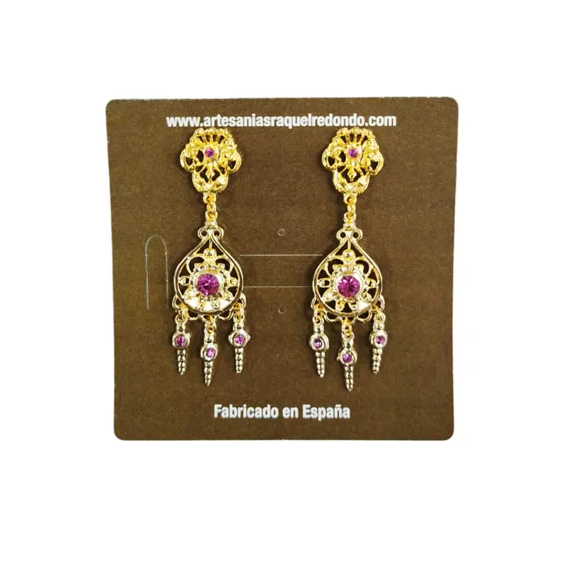 - En cuanto a los colores, los pendientes son dorados y están decorados con piedras de colores, en este caso, disponemos en colores: